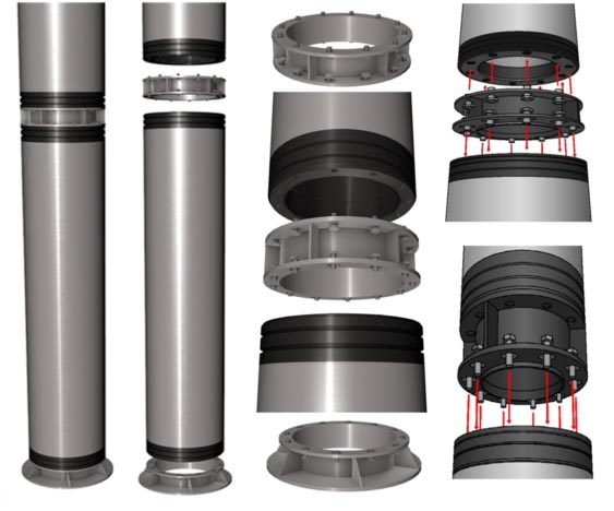 - 용접이음이 아닌 볼트체결이음 방식을 개발하여 볼트 조임만으로 정확하고 신뢰성 높은 이음작업이 가능하며 장공형 결합부로 인한 다른 규격의 호환 가능