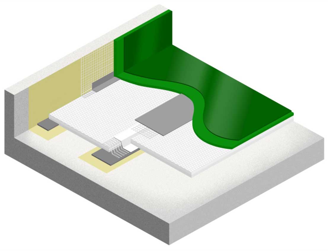 이 신기술은 복합층을 구성하는 도막과 시트의 일체성을 위하여 육각형 벌집 형태의 수평 섬유층과 재생폴리에틸렌 필라멘트 형태의 수직 섬유층으로 구성된 입체구조의 시트에 일액형 액상방수재를 주입하고 시트 접합부를 Z형으로 시공하는 복합방수공법이다.